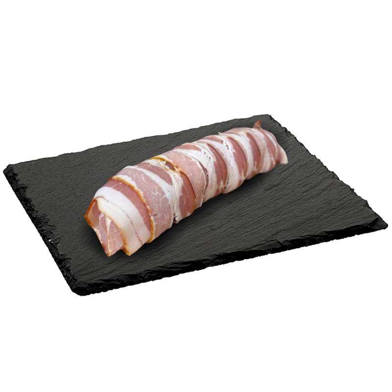 Pulykarolád baconbe göngyölve aszalt szilvával, gesztenyével töltött