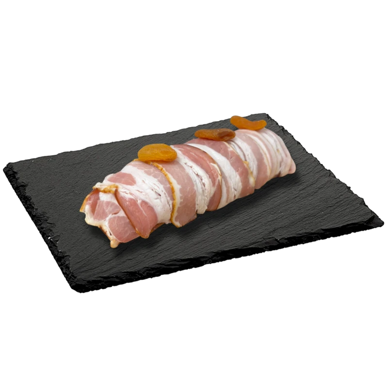 Pulykarolád baconbe göngyölve, barackos, sajtos