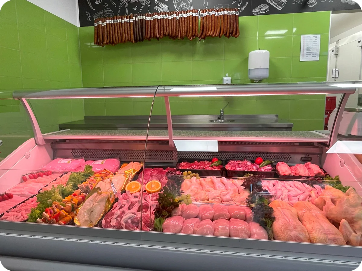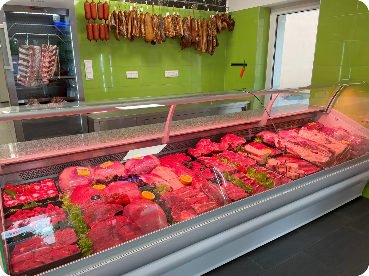 Egyedülálló kezdeményezés a környéken, hogy ilyen széles árupalettával találkozik a vásárló. Nálunk a dry aged technológiával készült marhahústól a gyöngytyúkig szinte minden megtalálható. Húsboltunk prémium minőségű, széles termékkínálattal várja vásárlóit. Magyar sertés, birka, csirke, pulyka, liba, kacsa, vadhús és osztrák, argentin, valamint brazil marhahús közül válogathatnak. Változatos halkínálatunk is hozzátesz boltunk népszerűségéhez.